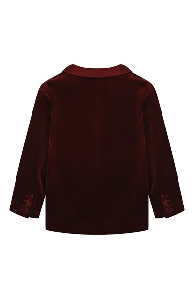 Пиджак из бархата на основе хлопка и шелка дополнили атласными шалевыми лацканами. Контрастный подклад из купро украсили брендированным принтом. Помимо боковых карманов предусмотрели нагрудный с листочкой.
