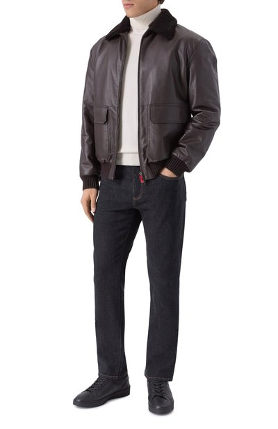 Высокие кожаные кеды Cleanic, утепленные овчиной, застегиваются молнией сбоку. Верх установили на резиновую подошву со вставками в форме перемычки знаковых монков, окрашенными в фирменный оттенок Arancio Santoni.
