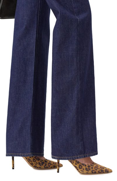 Туфли Love с кожаной внутренней отделкой выполнили из фактурной телячьей кожи с анималистичным принтом. Верх с брендированной стелькой установили на тонкую кожаную подошву с однотонным каблуком.