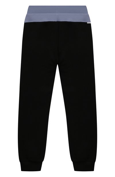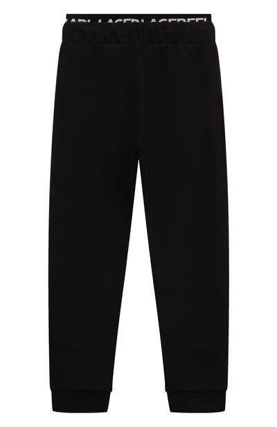 Для изготовления джоггеров с эластичным поясом использовали хлопок с добавлением полиэстера. Спереди модель украсили логотипом марки, а сзади дополнили ярлыком.