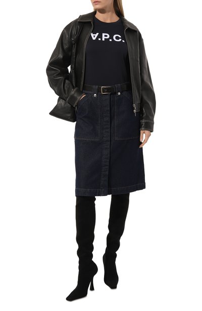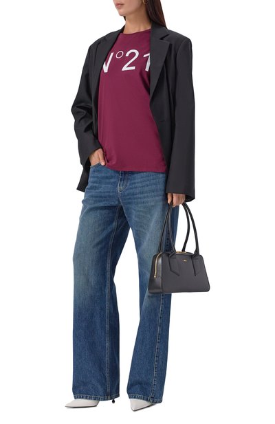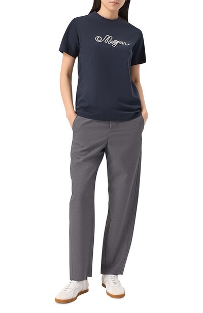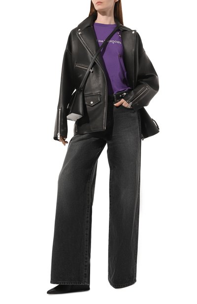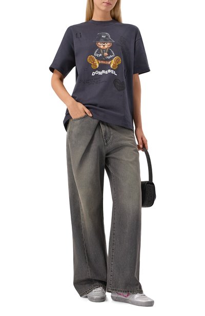 Футболку с круглым вырезом в рубчик выполнили из хлопкового джерси стрейч. Спереди модель декорировали принтом Institutional Logo, покрытым стразами.