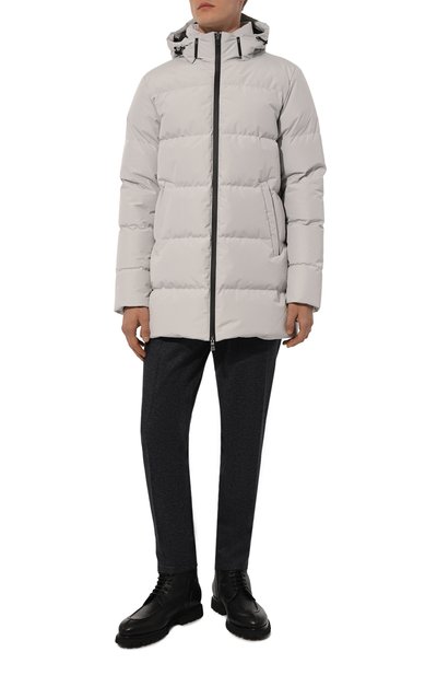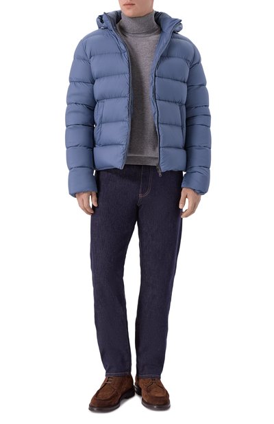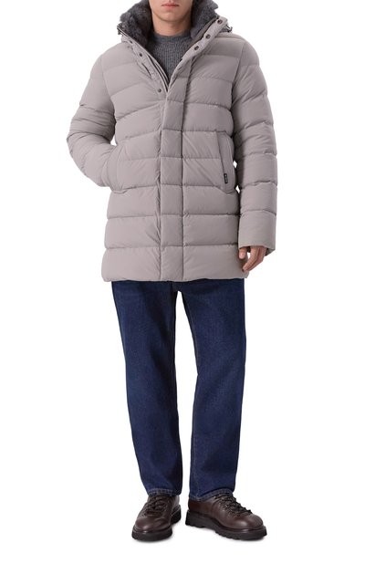 Стеганую куртку Jorvik на утином пуху выполнили из влагостойкого нейлона. Модель с высоким воротом и съемным капюшоном дополнили по паре внутренних и внешних карманов. Пуховик застегивается молнией, скрытой под штормовой планкой с кнопками.