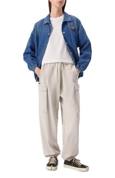 Джоггеры с широким поясом-кулиской выполнили из ворсового материала на основе полиэстера. Под одним из трех карманов м одели расположили фирменную эмблему Dunst D.