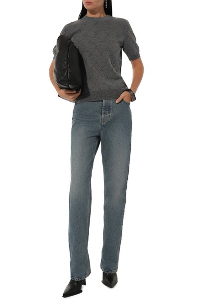 Укороченный пуловер из шерстяной пряжи с добавлением кашемира украсили брендированной клеткой аргайл. Рукава декорировали контрастными поплиновыми манжетами на пуговицах.