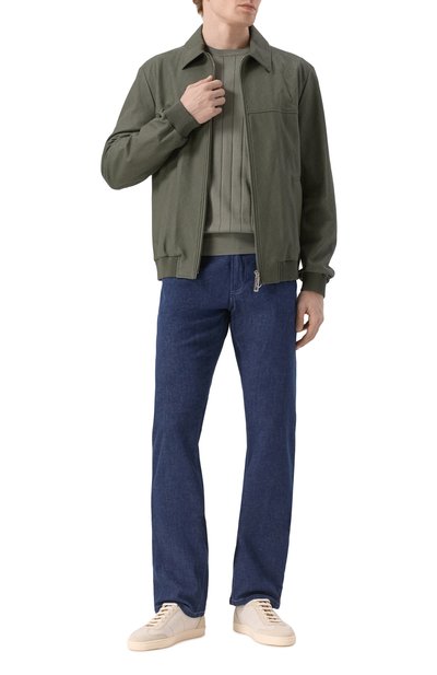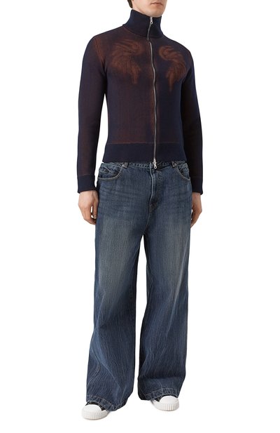 Широкие джинсы с пятью карманами выполнили из неэластичного денима с вельветовой фактурой. Немного выбеленную модель дополнили регулируемой кулиской на поясе.