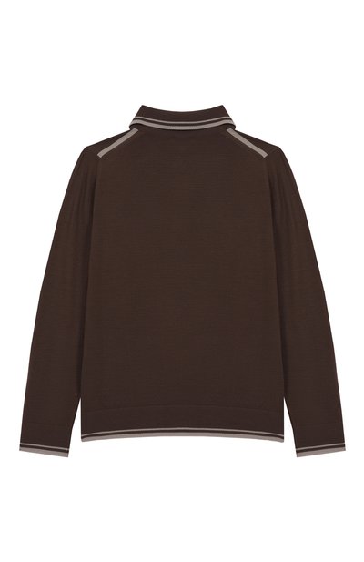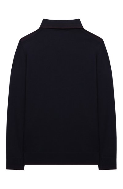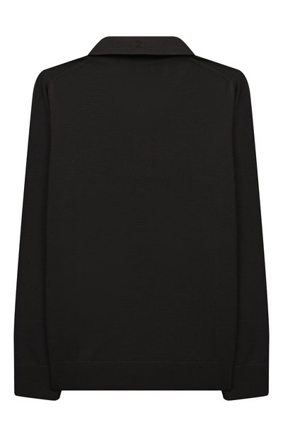 Поло с длинными рукавами выполнили из тонкого шерстяного трикотажа. Модель с манжетами и поясом в рубчик застегивается потайной молнией с пуллером в виде фирменного октагона, которому вторит металлический декор сбоку.