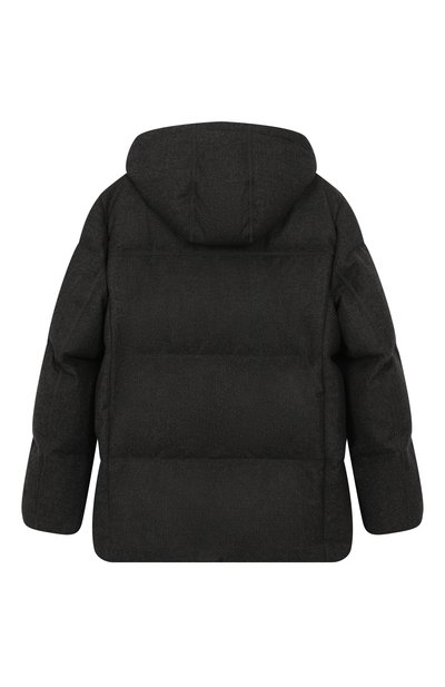 Стеганую куртку с фирменным октагоном на рукаве выполнили из шерстяного габардина с добавлением кашемира. Модель с боковыми карманами и съемным регулируемым капюшоном застегивается молнией и штормовой кнопочной планкой.