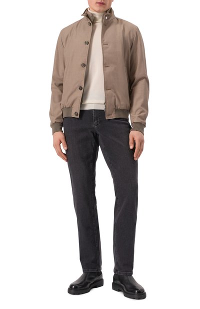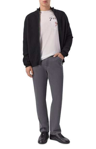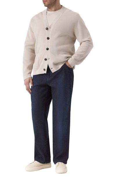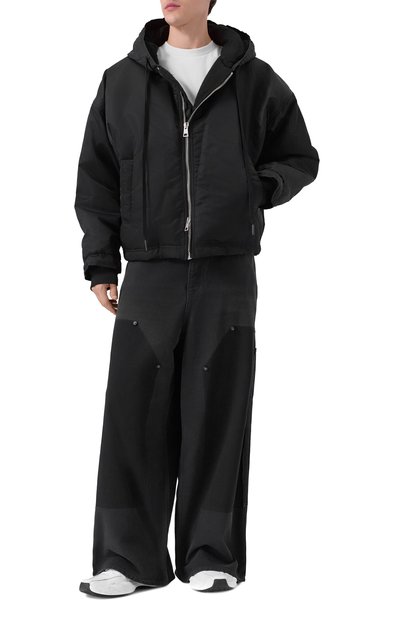 Джинсы свободного кроя сшили из хлопкового денима с глянцевым покрытием. Модель с пятью карманами украсили брендированным патчем на поясе сзади.
