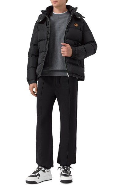Стеганую куртку на гусином пуху выполнили из полиэстера. На рукаве – силиконовый патч с фирменной эмблемой Equestrian Knight Design. Регулируемый капюшон дополнили подкладом из шерстяного твила в клетку Burberry Check. Модель с двумя парами карманов застегивается молнией и штормовой кнопочной планкой.