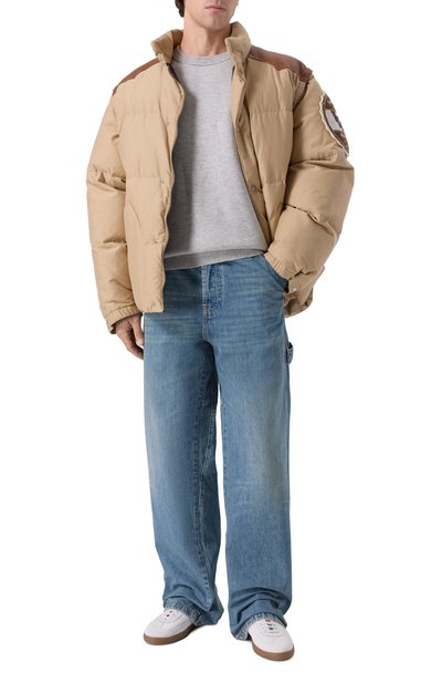 Стеганую куртку на гусином пуху выполнили из полиэстера, дополнив воротник-стойку и съемный регулируемый капюшон подкладкой в клетку Burberry Check. Модель с боковыми карманами и кулиской по низу можно превратить в жилет, отстегнув рукава, на одном из которых – патч с фирменной эмблемой Equestrian Knight Design.