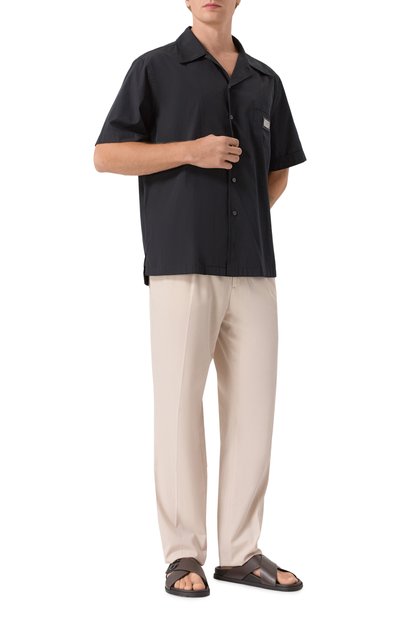 Широкую союзку шлепанцев с двумя брендированными пряжками выполнили из замши с тисненым узором GG Supreme. Пару на резиновой подошве дополнили формованной стелькой из мелкозернистой кожи.