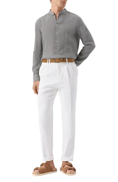 Широкую союзку шлепанцев с двумя брендированными пряжками выполнили из замши с тисненым узором GG Supreme. Пару на резиновой подошве дополнили формованной стелькой из мелкозернистой кожи.