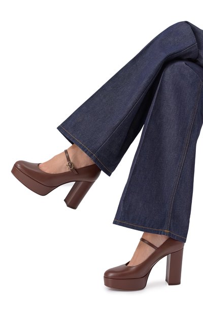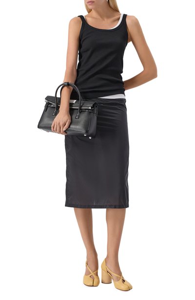 Туфли Tabi на обтяжном блочном каблуке выполнили из гладкой телячьей кожи, а внутреннюю отделку – из овечьей. Модель с фирменным стежком на заднике застегивается пряжкой на регулируемом ремешке.