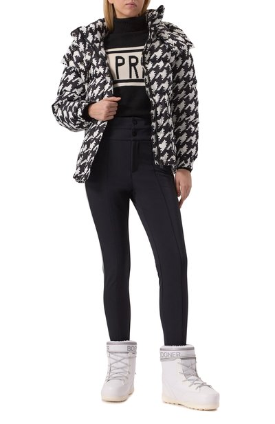 Брюки High-Waist Aurora Flare с подкладом из термофлиса и проклеенными швами выполнили из влагонепроницаемой нейлоновой ткани Toray Dermizax™, тянущейся в четырех направлениях. Модель с завышенной посадкой, снегозащитными гетрами и двумя карманами дополнили короткими молниями на манжетах.