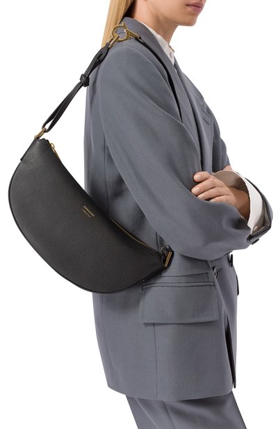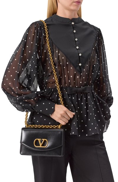 Сумку Hip East-West с регулируемым плечевым ремнем выполнили из мелкозернистой козьей кожи. Аксессуар с внутренним слотом для карт и откидным клапаном с магнитной застежкой декорировали фольгированным логотипом спереди. В комплекте – брелоки с двумя разъемными кольцами и фирменной биркой.