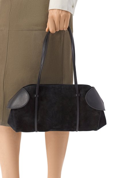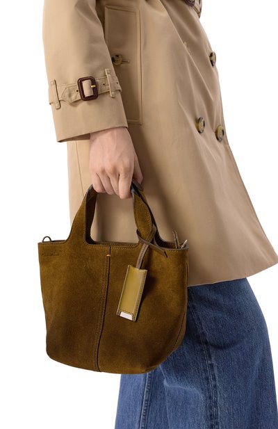 Сумку Le Turismo с боковыми перемычками и декоративным узлом на одной из ручек сшили из замши с тиснением под крокодила. Модель с внутренним карманом застегивается молнией и магнитом.