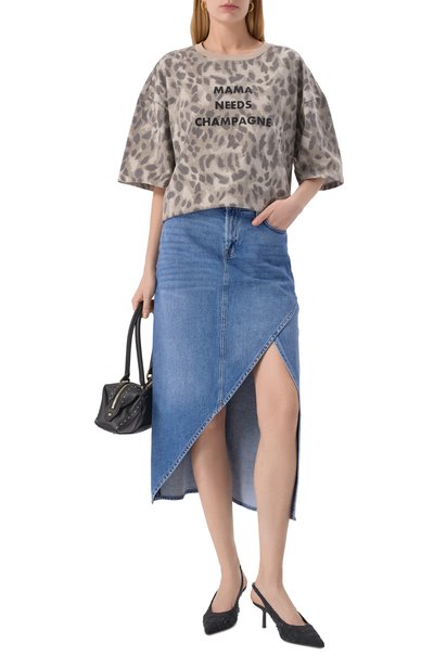Мини-юбка из хлопкового денима составит гармоничный дуэт с парным жакетом. Модель А-силуэта дополнили боковыми карманами с плетеной отделкой и декоративными пуговицами. Сзади предусмотрели молнию.