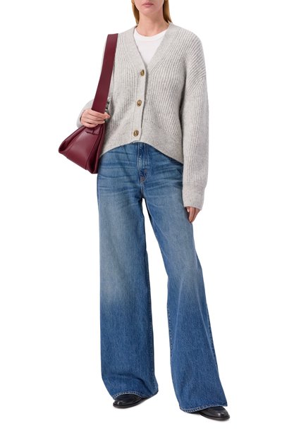 Свободный кардиган Varten со спущенной линией плеч связали из шерстяной пряжи с добавлением кашемира. Сзади модель, застегивающуюся потайными кнопками, украсили нашивкой в тон.