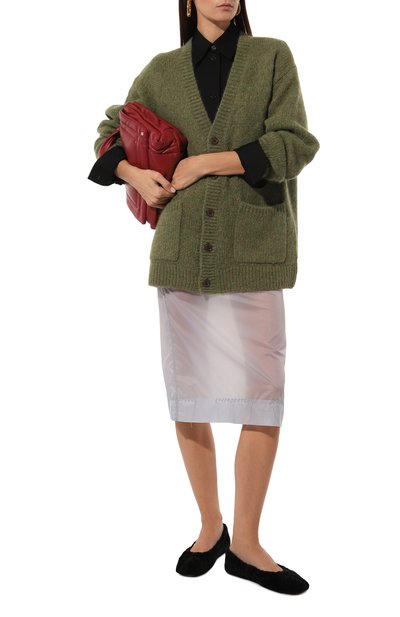 Балетки на плоской резиновой подошве выполнили из бархата, усилив изнутри тонкой кожей. Вырез модели подчеркнули объемным кантом.