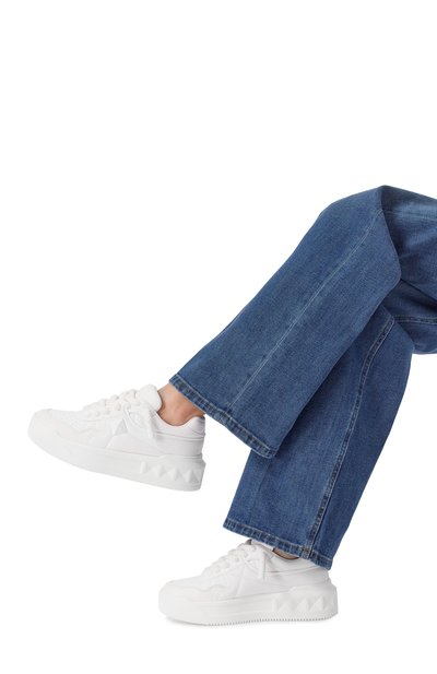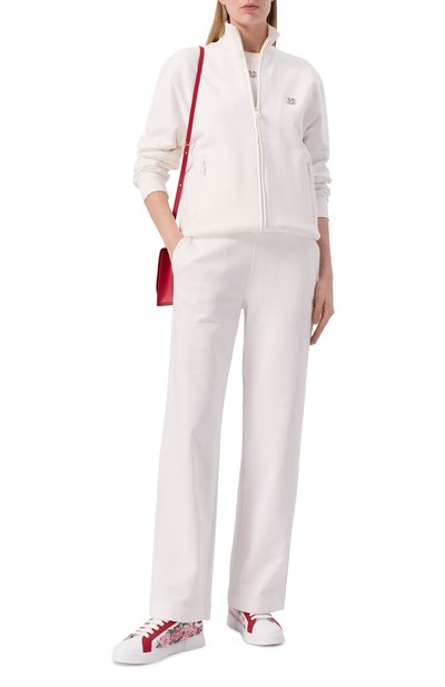 Кеды Saint Tropez из зернистой кожи украсили кристаллами и гранеными бусинами. Задник подчеркнули металлическим логотипом, а язычок – тисненым. Пару с замшевой накладкой на мысе установили на брендированную подошву в тон.