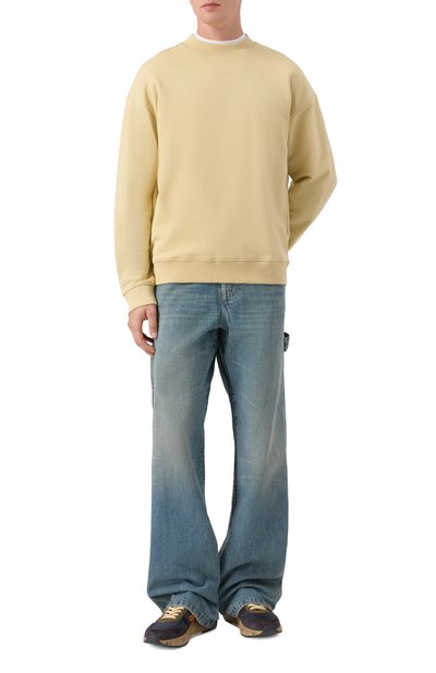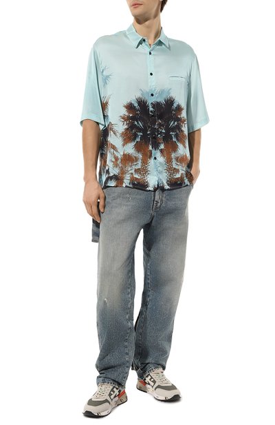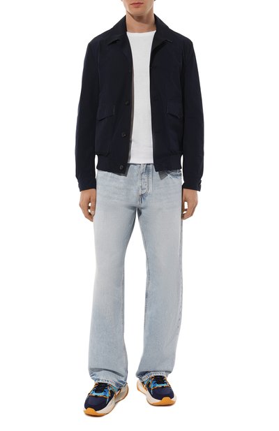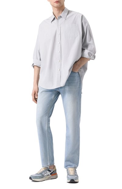 Для пошива кроссовок использовали комбинацию плотного фактурного текстиля и полиуретана, напоминающего замшу. Пару на полимерной подошве с брендированным принтом дополнили стелькой с эффектом памяти. Сбоку разместили изображение фирменного орла, на язычке – тисненый логотип.