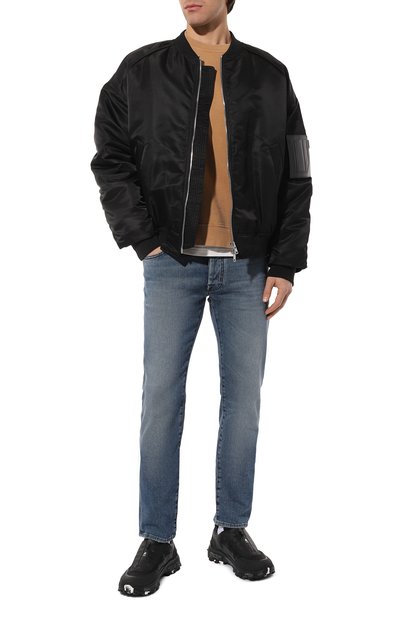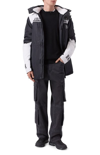 Кроссовки Vinson 445 на широкой брендированной подошве с протектором выполнили из текстиля, напоминающего кожу материала и полимера. Модель с петлей на заднике декорировали эмблемами-иероглифами на пятке, сбоку и на потайной молнии, заменяющей шнуровку.