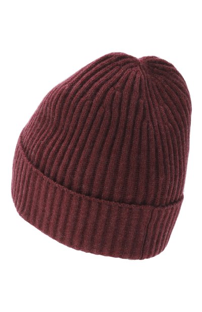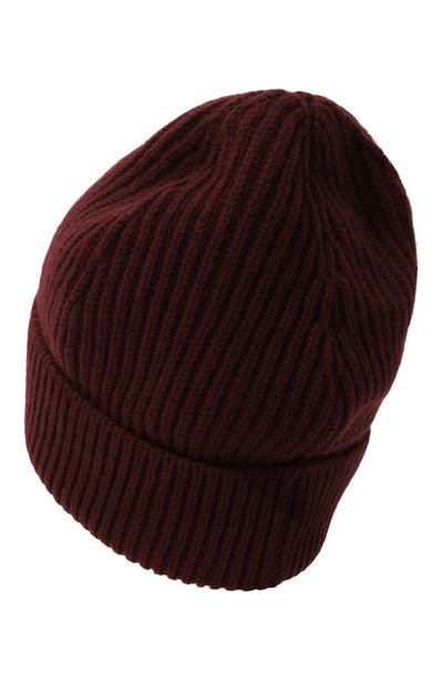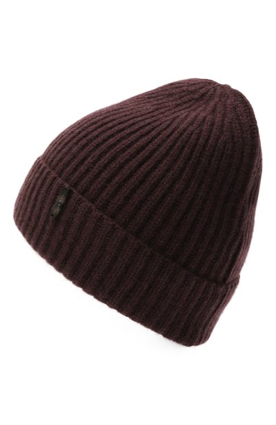 Для изготовления шапки бини использовали гладкий трикотаж из кашемира и шелка. Широкий отворот аксессуара украсили жаккардовыми полосками и логотипом.