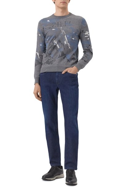 Джемпер с восьмицветным жаккардовым узором Oniric Desert и логотипом на спинке выполнили из гладкой и пушистой пряжи на базе хлопка с добавлением шерсти и мохера. Модель со спущенной линией плеч станет основой повседневного образа.