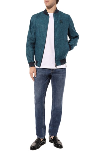Стеганый бомбер с поясом, воротом и манжетами из трикотажа в рубчик дополнили боковыми и нарукавным карманами с клапанами. Утепленная куртка из полиэстера застегивается встречной молнией.
