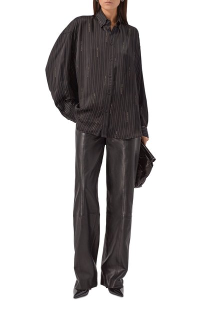 Рубашку с фигурными кокетками и закругленным низом дополнили нагрудными карманами с клапанами. Модель изготовили из чистого кашемира.