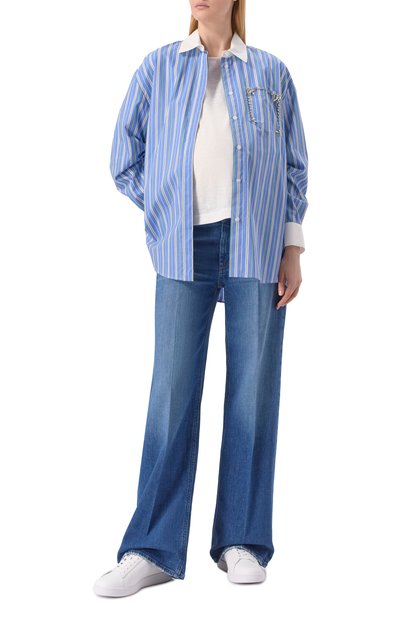 Джинсы 90's High Rise Loose с пятью карманами выполнили из неэластичного денима. Выбеленную модель с искусственными заломами декорировали брендированным патчем на поясе сзади.