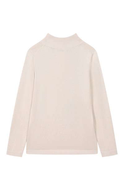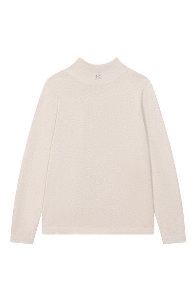 Водолазку с манжетами, поясом и высоким воротом в рубчик связали из кашемировой пряжки, усиленной шелком. Линию плеч и окаты модели подчеркнули рифленым мотивом.