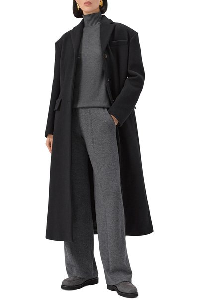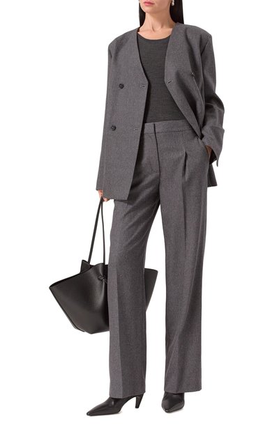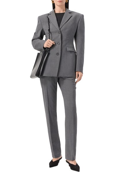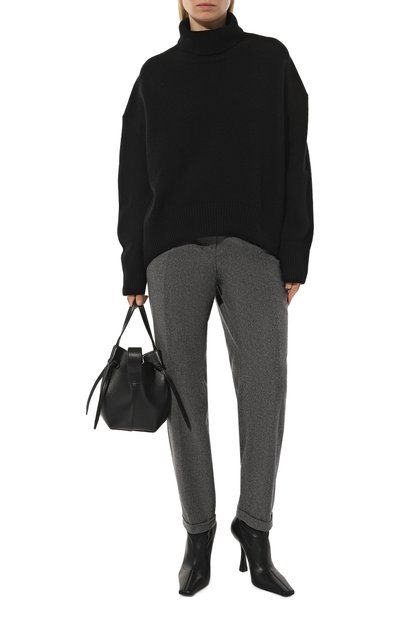 Брюки Negus со стрелками дополнили врезными карманами по бокам. Для изготовления модели с меланжевым микроузором использовали эластичный трикотаж на основе хлопка и вискозы.