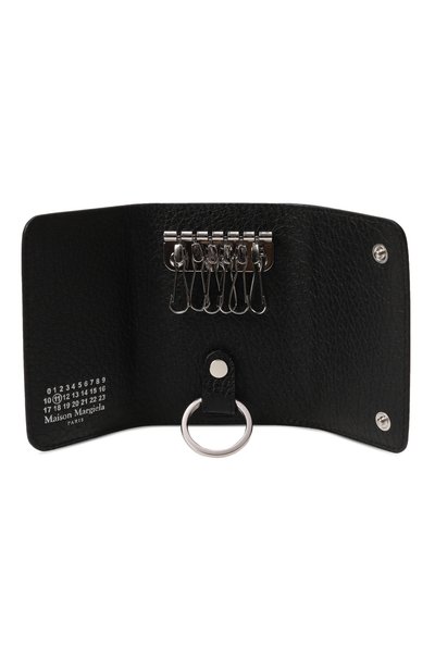 Ключницу с четырьмя фирменными стежками сзади выполнили из металлизированной кожи с эффектом кракле. Аксессуар с шестью креплениями застегивается кнопками.