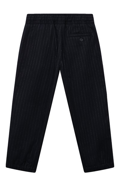 Для пошива полосатых брюк использовали костюмную ткань с добавлением шерсти и хлопка. Модель с потайной кулиской на поясе дополнена тремя парами карманов: боковыми, задними и карго.