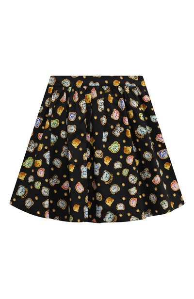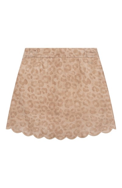 Юбку с леопардовым мотивом выполнили из экомеха на основе полиакрила и полиэстера. Модель А-силуэта дополнили подкладом из чистой вискозы. Под эластичным поясом сзади разместили брендированный патч.