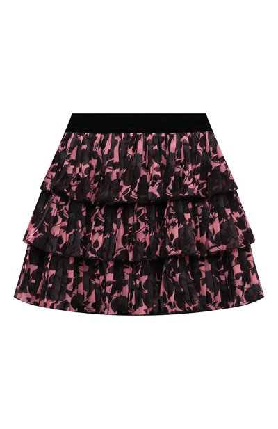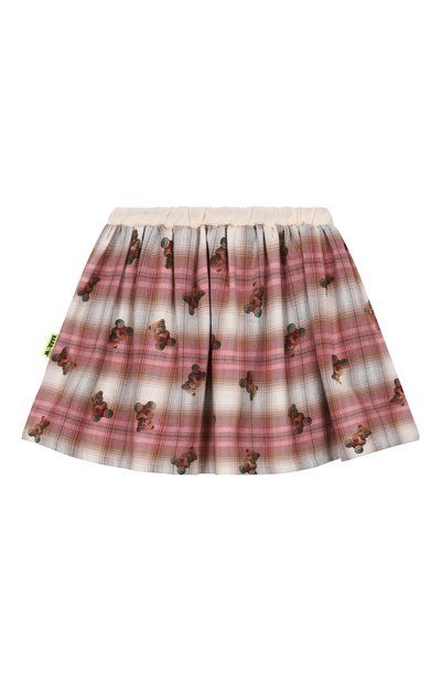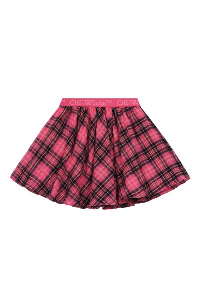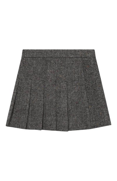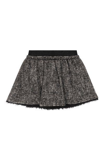 Расклешенную твидовую юбку с необработанным низом украсили контрастной нашивкой с логотипом на поясе сзади. Модель на вискозном подкладе застегивается потайной молнией сбоку.