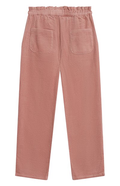 Брюки с четырьмя карманами дополнили карго сзади и петлей hammer loop сбоку. Модель, как и фигурные накладки спереди, выполнили из хлопкового вельвета.