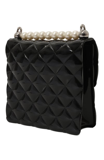 Сумку с объемным кантом и брендированной накладкой выполнили из искусственной кожи с крупным зернением. Аксессуар с длинной ручкой и плечевым ремнем дополнили внутренним карманом.