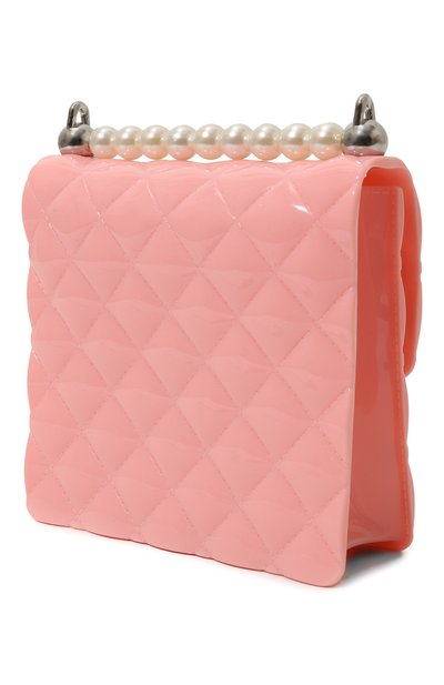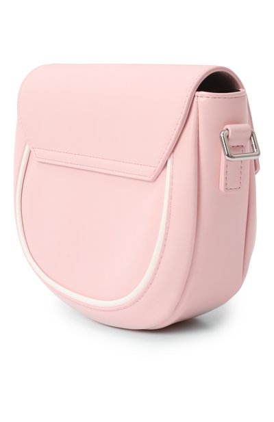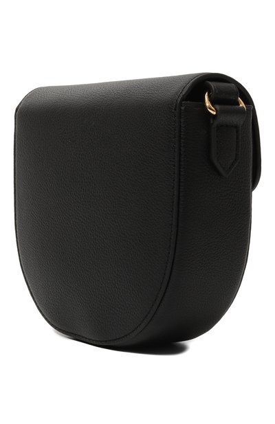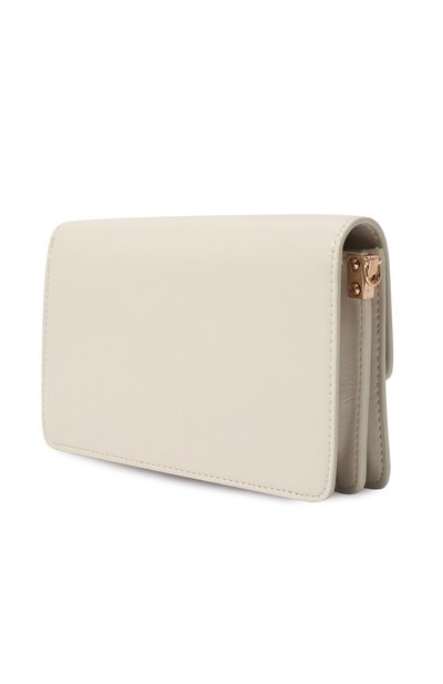 Сумку со съемным плечевым ремнем-цепочкой выполнили из экокожи. Аксессуар с внутренним карманом на молнии закрывается клапаном с металлическим логотипом и магнитной кнопкой.