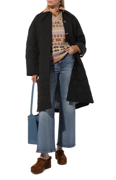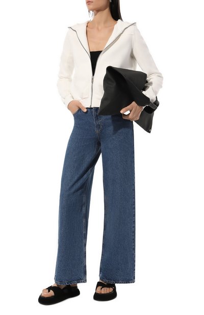 Расклешенные джинсы Ortles с защипами и декоративными заломами выполнили из слегка эластичного денима на основе органического хлопка. Один из четырех карманов модели украсили брендированной нашивкой, пояс – патчем, а кокетку сзади дополнили хлястиком.