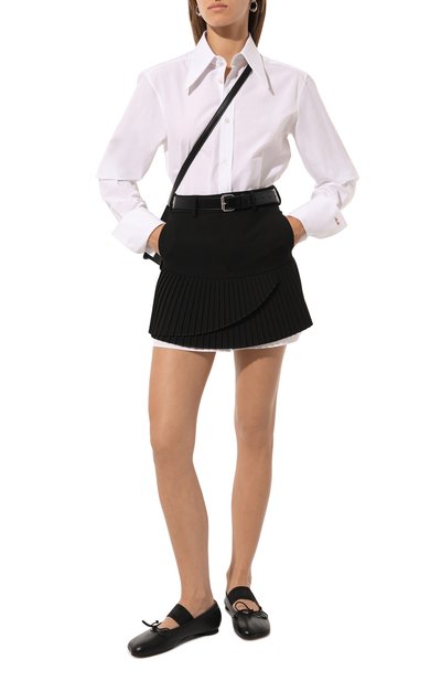 Мини-юбку Crystal Flower выполнили из эластичного полиэстерового атласа. Драпировку на модели сбоку подчеркнули аппликацией в форме многослойного цветка с длинной подвеской из четырех кристальных нитей.