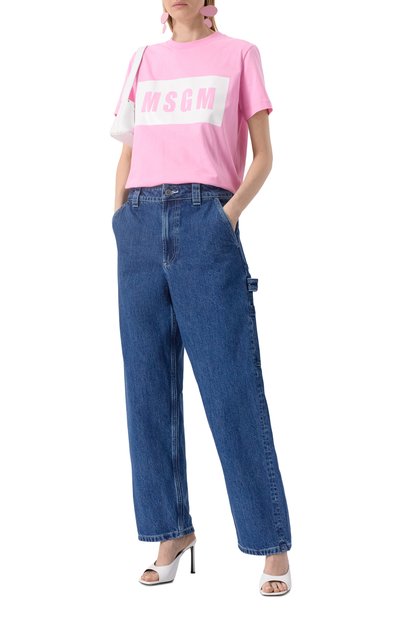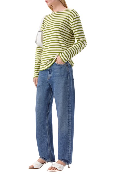 Широкие джинсы Low Curve с декоративными потертостями и заломами выполнили из хлопкового денима. Модель дополнили пятью карманами.