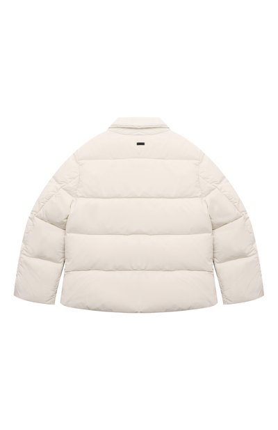 Стеганую куртку на утином пуху выполнили из эластичного нейлона Sensitive®. Спереди закрепили брендированную нашивку. Модель с капюшоном, боковыми карманами и кулиской по низу застегивается молнией.