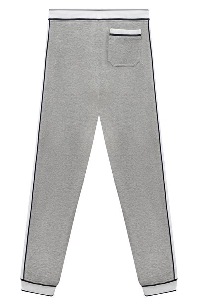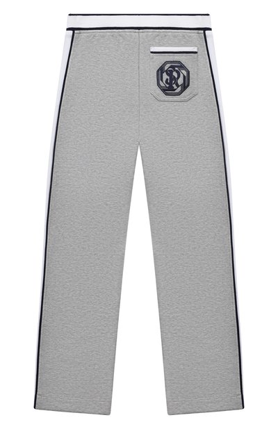 Брюки с поясом в рубчик выполнили из меланжевого хлопкового трикотажа. По бокам разместили врезные карманы, а сзади – накладной с вышитым геральдической эмблемой Royal Eagle.