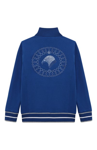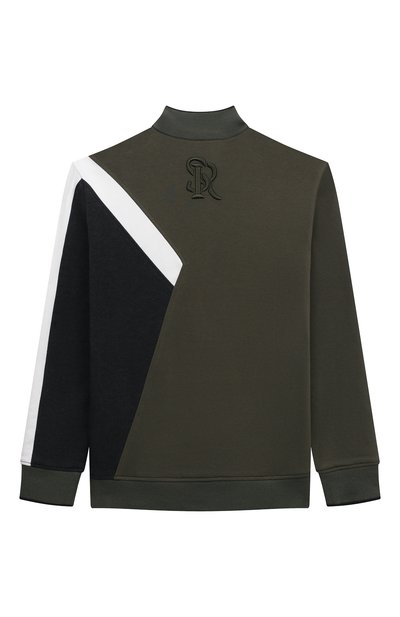 Толстовку с манжетами, поясом и воротником-стойкой в рубчик выполнили из эластичного хлопкового трикотажа. Меланжевую модель с боковыми карманами украсили геральдической вышивкой Royal Eagle, которой вторит пуллер-октагон на молнии.