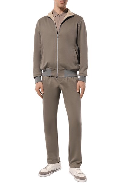 Толстовку с манжетами и поясом в рубчик выполнили из гладкого трикотажа на основе полиэстера. Модель с крупным логотипом на спинке и боковые карманы застегиваются молниями.