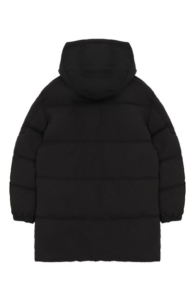 Утепленную куртку из полиамида дополнили контрастными лентами на плечах и рукавах. По бокам предусмотрели врезные карманы, а левую полочку декорировали брендированным патчем. Модель с капюшоном застегивается молнией с защитой от защемления.