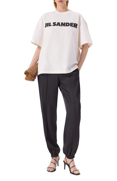 Футболку свободного кроя выполнили из хлопкового джерси. Спереди и на спинке модель с круглой горловиной в рубчик декорировали графическими брендированными принтами Book Club.