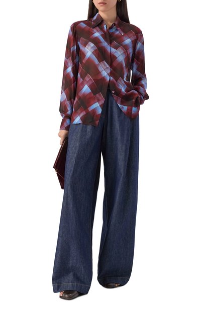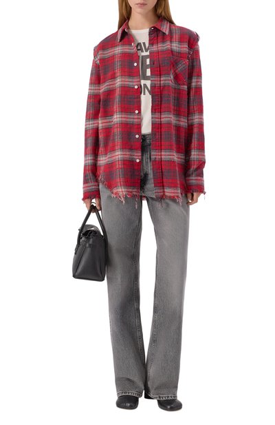 Клетчатую рубашку дополнили трикотажными рукавами с мотивом Flames, создав иллюзию многослойности. Oversize-модель из твила на основе вискозы и полиэстера украсили брендированной нашивкой под воротником сзади.